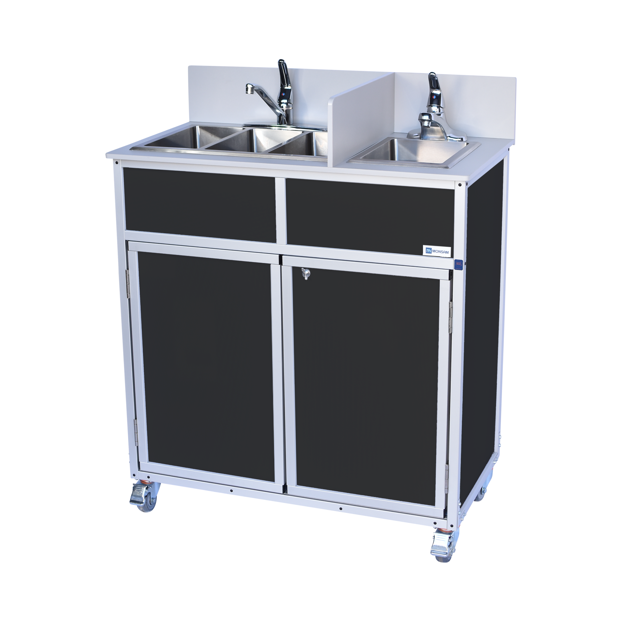 The NS‐004S comes mounted on four heavy-duty locking swivel casters for easy mobility and includes a dedicated GFCI outlet and 92" power cord. It's available in a variety of colors including black, gray, red, white, blue, and maple. Also check out Monsam's 3-Compartment and Single Basin sink models.
