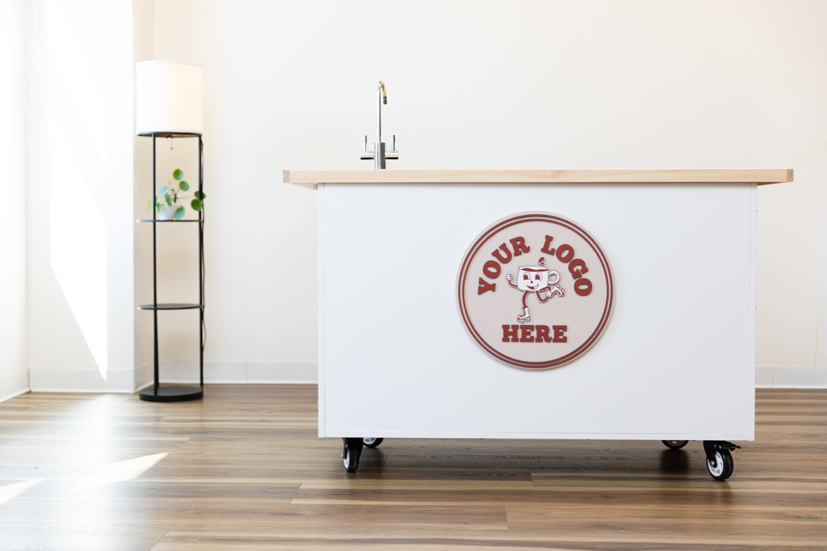 The Kickstart Coffee Cart is the fastest, simplest way to launch a mobile coffee business. Built to eliminate guesswork, Kickstart arrives ready to run with integrated utilities including a pump and accumulator, power connections, custom snap-and-go water lines, pre-drilled utility access, and cutouts for the included knock box, pitcher rinser, and hot and cold water sink kit. Add your favorite coffee equipment, hit the road, and launch your brand on the first kick!